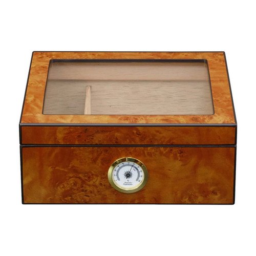 Mahogany Case Humidor! This practical and stylish humidor is 260 x 220 x 110mm in size and comes with 1 hygrometer and 1 humidifier. It has a removable internal divider, making it perfect for cigar enthusiasts. Get ready to indulge in luxury with Cigar Brothers!