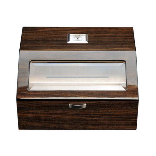 Mahogany Gloss Humidor! This practical and stylish humidor is 280 x 235 x 138mm in size and comes with 1 hygrometer and 1 humidifier. It has a removable internal divider tray and cigar cutter, making it perfect for cigar enthusiasts. Get ready to indulge in luxury with Cigar Brothers!